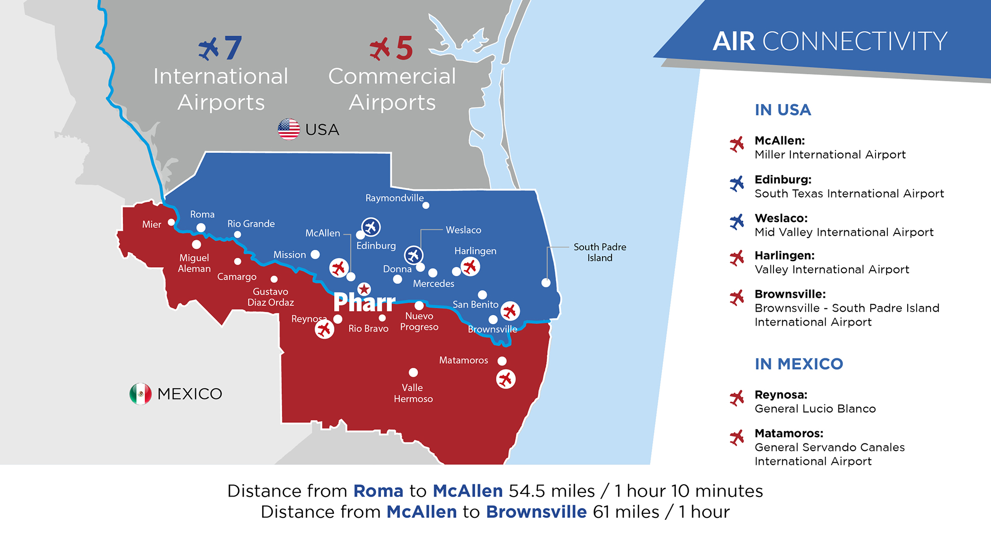Air connectivity is a vital aspect of Pharr, Texas’s infrastructure, contributing to its significant commercial and logistical hub status.
