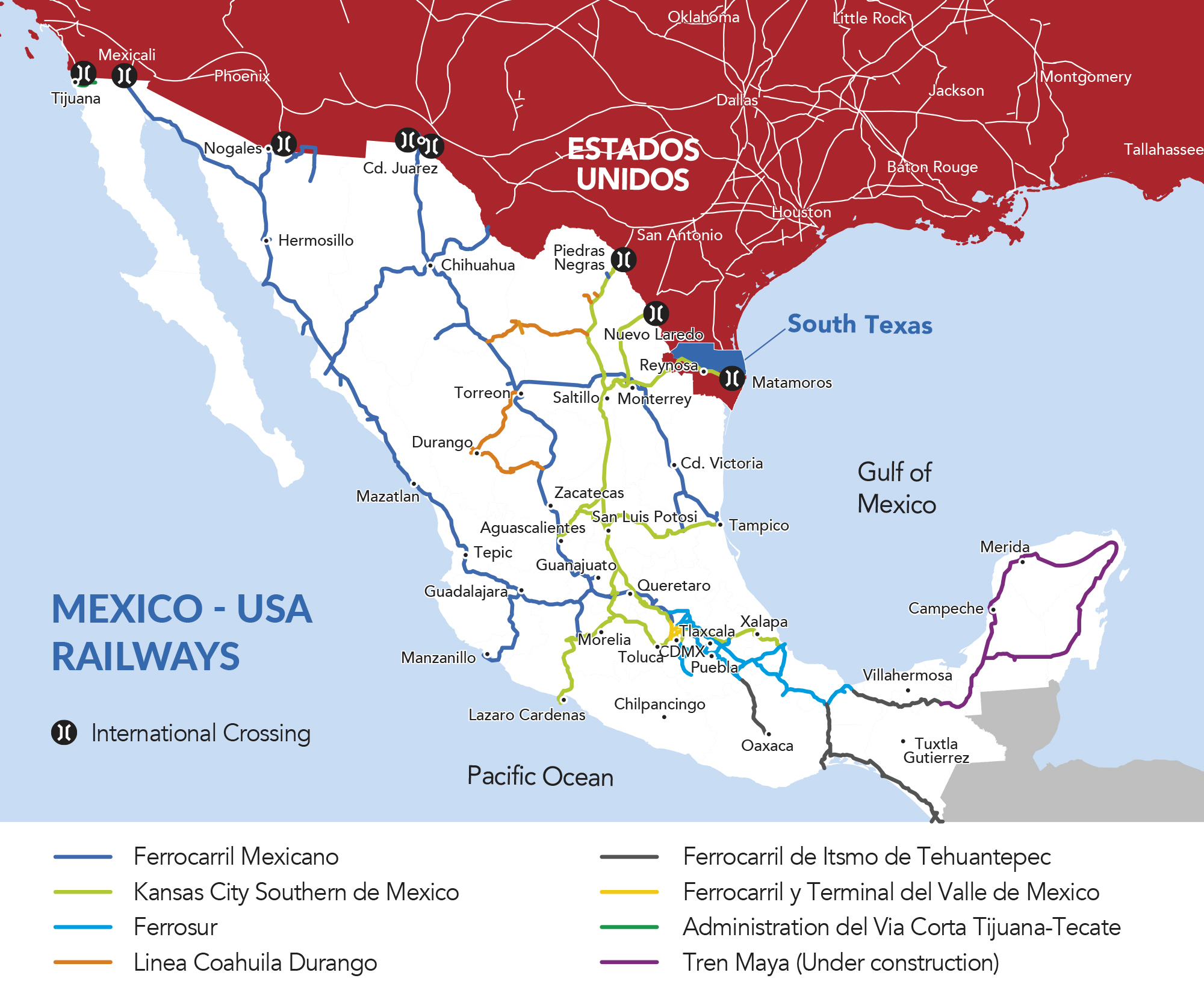 The South Texas region, including Pharr, and its neighboring cities in Mexico, Reynosa, and Matamoros, have a well-established railway infrastructure that plays a crucial role in connecting and transporting freight.